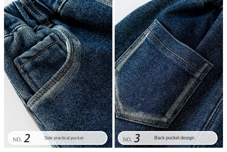 Kids Boys Bear Jeans Fleece Lined Denim Pants, Thick Winter One-Piece Warm Long Jeans for Streetwear 5