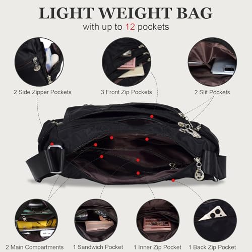 HOT ! WITERY Nylon Crossboby Bags for Women - Waterproof Zipper Multi-Pocket Crossboby Purse Lightweight Shoulder Bag