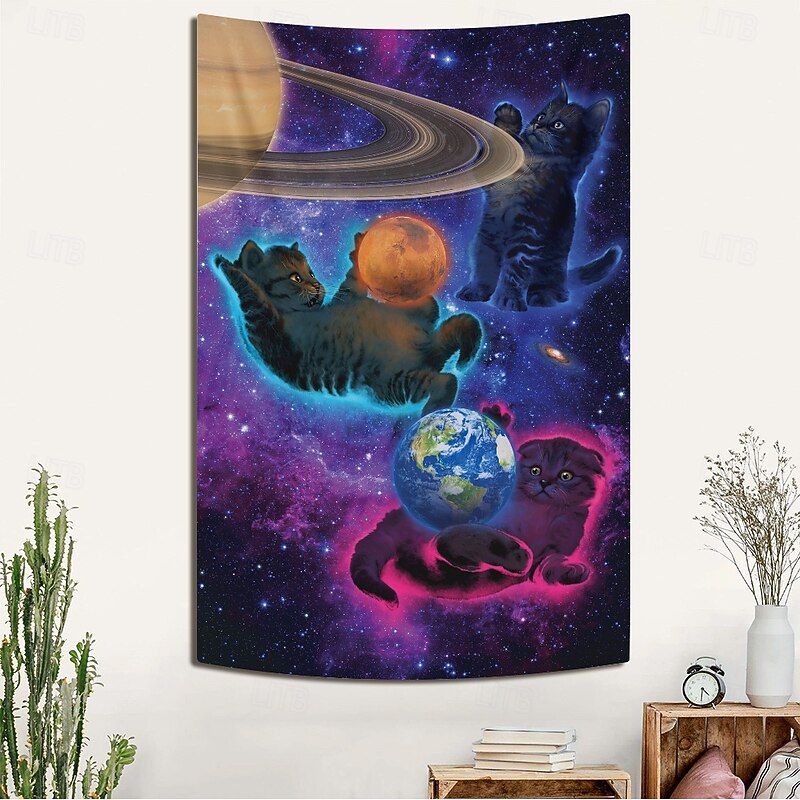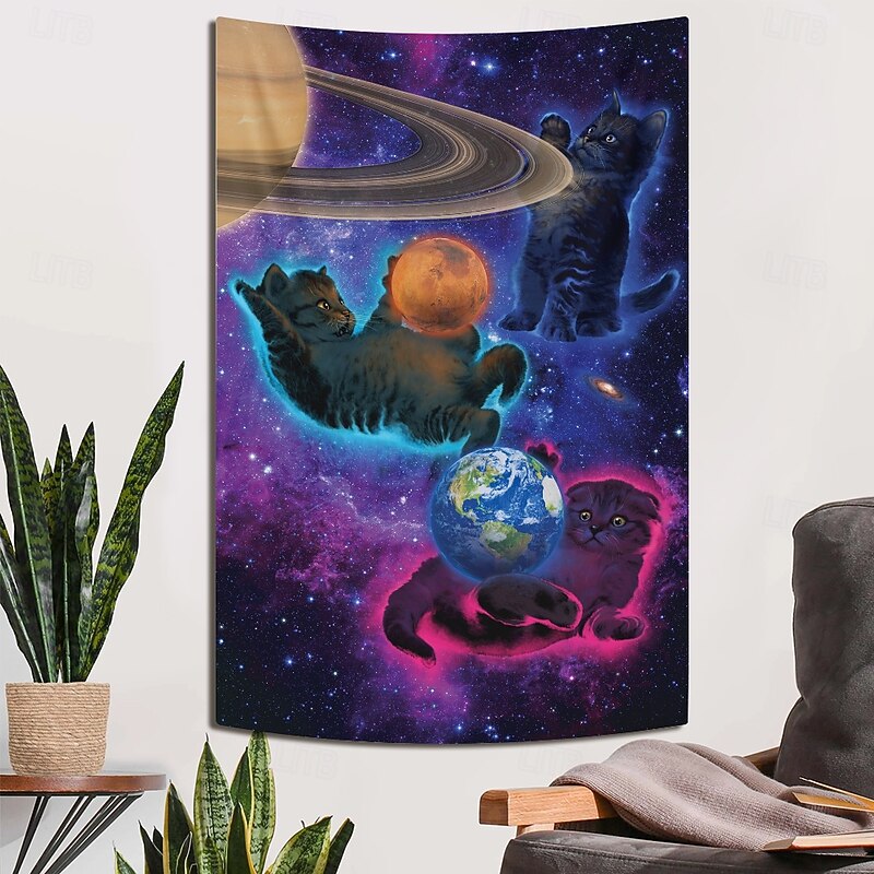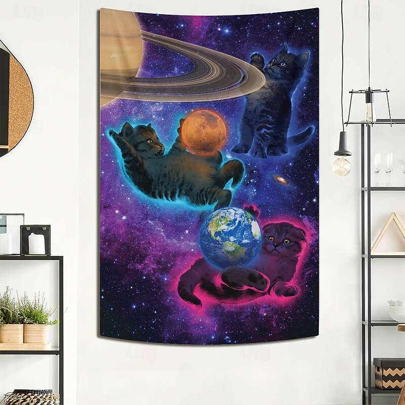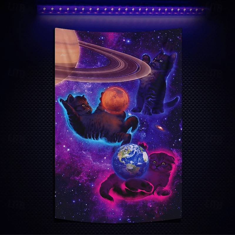$20.99 - "Cosmic Kittens" by Vincent Hie Blacklight Tapestry Glow in the Dark Glow Party UV Reactive Trippy Misty Hanging Tapestry Wall Art Mural for Living Room Bedroom 2025. Shop for cheap Artist's Tapestry online? Buy at lightinthebox.com on sale today!