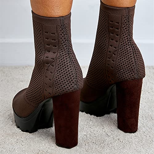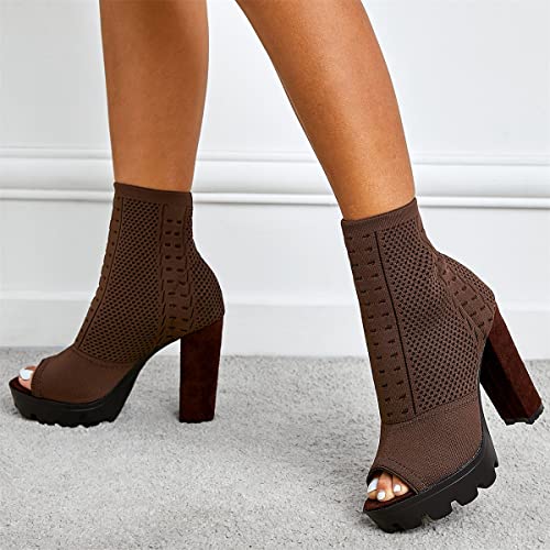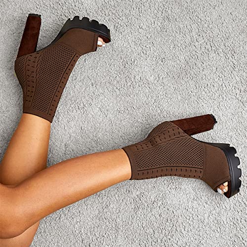 Betastella Women's Platform Chunky Peep Toe Summer Booties High Block Heel Stretch Ankle Boots Sandals 7