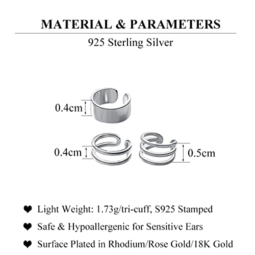 • MATERIAL: These cuff earrings are made of real 925 sterling silver with S925 stamped, which makes the whole earrings nickel free, lead-free, hypoallergenic, and don't cause any allergic reaction and don’t turn your skin green. These earrings are suitable for adult or teenager aged over 12 years old.