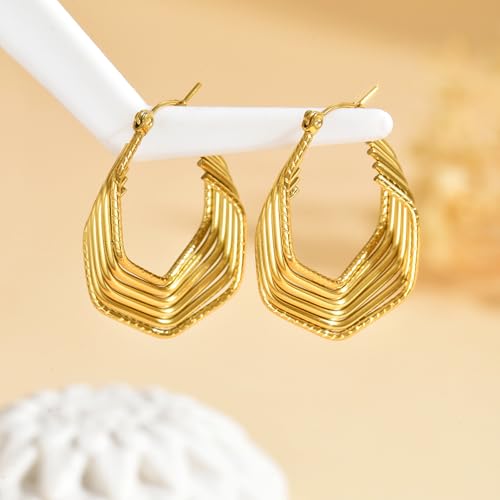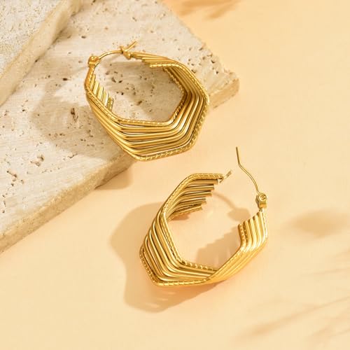 • Chunky Earrings for Women Size:The diameter of the hexagon earrings is 26mm×35mm and the thick is 9mm.gold hoop earrings are lightweight and suitable for daily wear.