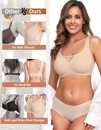 PoseFree Wireless Bras for Women Full Coverage No Underwire Supportive Seamless Back Fat Smoothing Padded Push Up Bra 4