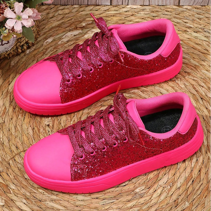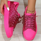 More information about Women's Sneakers Flats Pink Shoes Plus Size Fantasy Shoes Party Daily Solid Color Lace-up Flat Heel Round Toe Fashion Casual PU Black Rose Red
