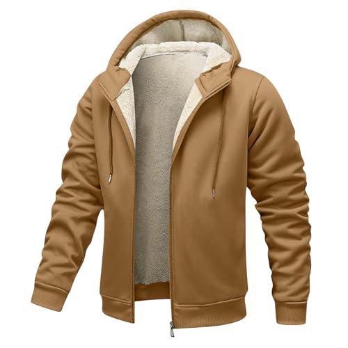 HOT ! Men's Fleece Sherpa Jacket Oversized Zip Front Hooded Coat Warm Lined Winter Outerwear with Pockets Casual Workwear