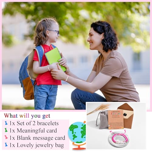 • First Day of School Bracelet: Set of 2 bracelets are special designed for mom and daughter. Your little girl may be nervous on her first day of first grade. In this time, open this 1st day of school gift and tell her: The big one is for mommy, the small one is for you. Wear it to school while you learn and play, this bracelet will give you power to face all difficulties and you will do anything well. And the most important, my heart will be with you throughout the day