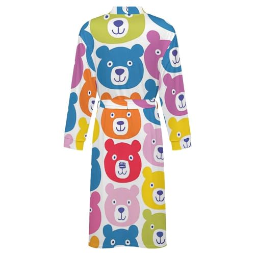 Colorful Bears Pattern gentle Robe Long Sleeve Bathrobes V Neck Sleepwear Spa Robes with Belt Men Woman