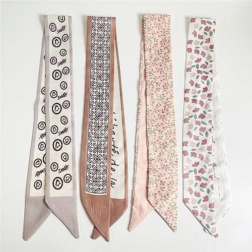QTMY 4 Pack Purse Scarf for Bags Silk Head Scarf for Hair Handbag Women Scarfs Band Hair Neck Scarves Fashion Gifts,134 4