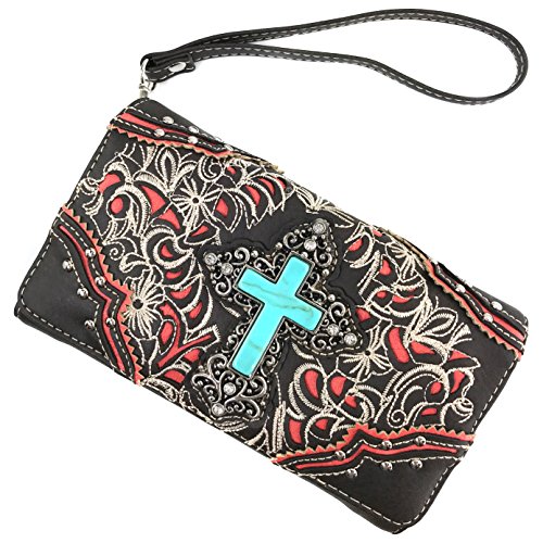 Why Choose Justin West Turquoise Stone Cross Rhinestone Western Floral Embroidery Handbag?