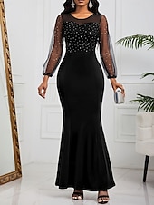 More information about Women's Black Dress Maxi Vintage Dress Solid Color Sequin Fashion Daily Mesh Patchwork Long Sleeve Crew Neck Dress Regular Fit Black Spring Fall S M L