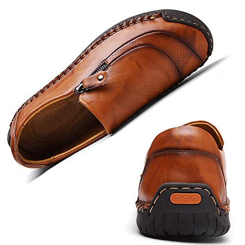 JEBU Men's Oxford Leather Handmade Casual Work Business Breathable Non-Slip Light Boat Shoes Loafers 7