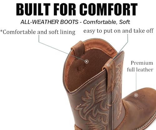 • [EASY TO WEAR] Sureway square toe cowboy boots are designed with two side pull tabs for easy on and off. Even off the job, the square toe western boots have become an iconic footwear choice. Wear them in any weather to keep your feet comfortable all day long. The surface of the boots is made of genuine leather, and the shaft part is made of high-quality artificial leather.