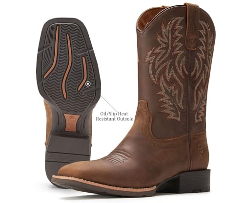 • [Durable Leather Foot & Premium Craftsmanship]This Sureway square-toe western boots use genuine leather uppers for the perfect blend of ruggedness and softness. Unlike synthetic materials, leather has natural waterproofing and allows for natural airflow, which helps prevent foot odor and keep feet cool, while also keeping them dry and comfortable in moist environments. Oil-tumbled leather looks better as time goes by.