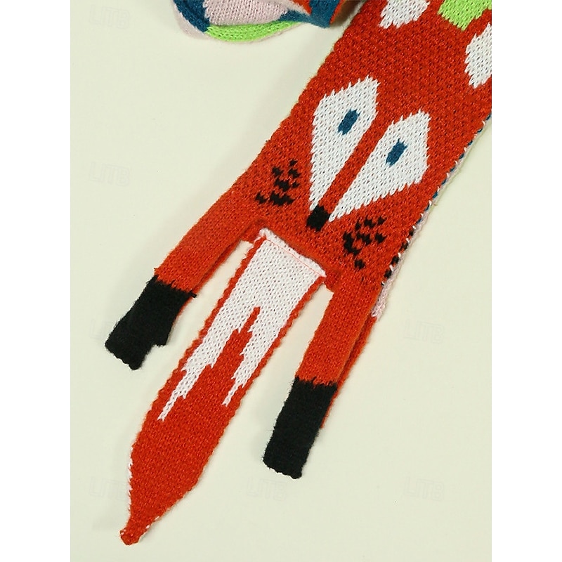 Women's Knitted Fox Scarf, Cute Animal Winter Neck Warmer, Soft Colorful Cartoon Shawl for Casual Wear, Outdoor & Holiday Gifts 1