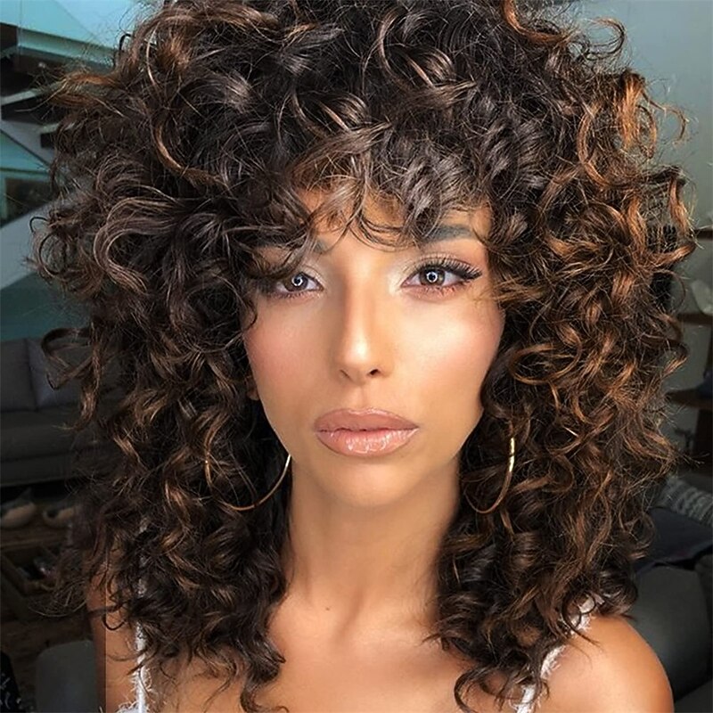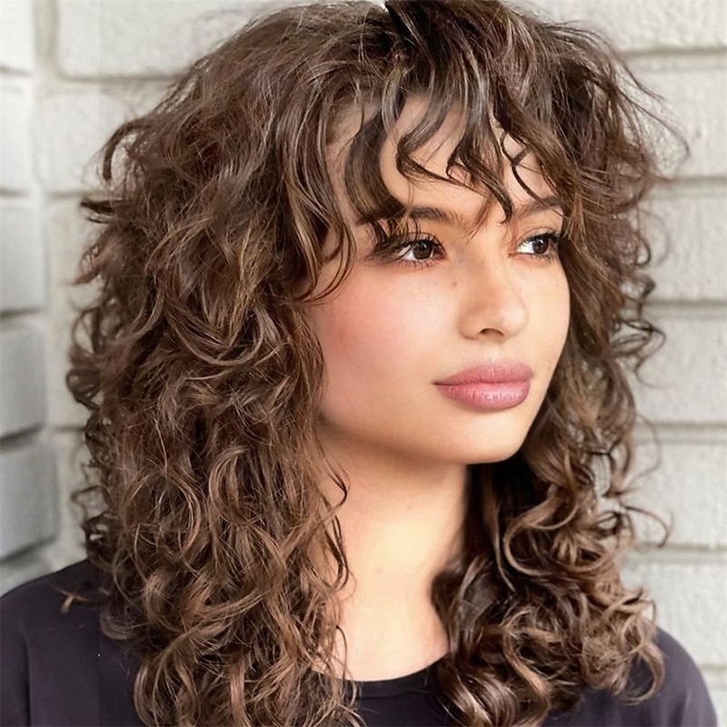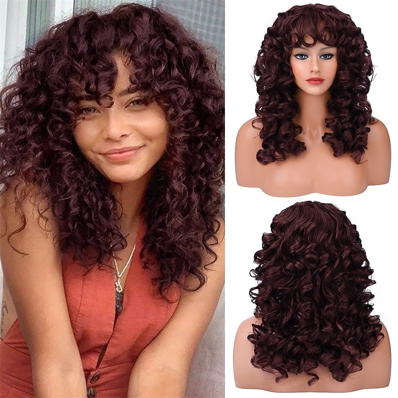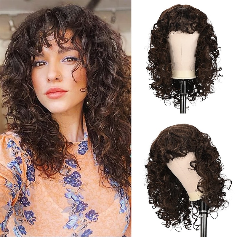 $28.99 - Curly Wig with Bangs for Women-LONAI Long 23Inch Chocolate Brown Kinky Wigs with Wispy Bangs Curly Gorgeous Shag Synthetic Wig for Daily Use Party Cosplay 2025. Shop for cheap Black & African Wigs online? Buy at lightinthebox.com on sale today!