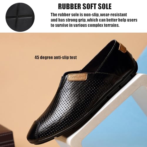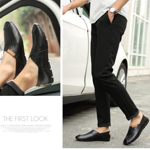 Men's Hand-Sewn Genuine Leather Slip on Penny Loafers Lightweight Non Slip Soft Bottom Driving Business Work Casual Shoes 6