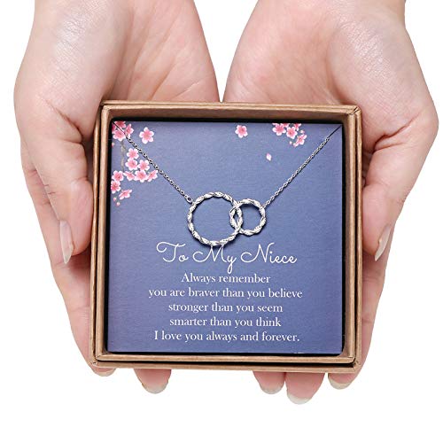 More information about Gifts for Niece from Aunt - Sterling Silver Twisted Intertwined Double Circle Aunt Niece Necklace Jewelry - Necklaces for Christmas Birthday Gifts with Message Card & Gift Box