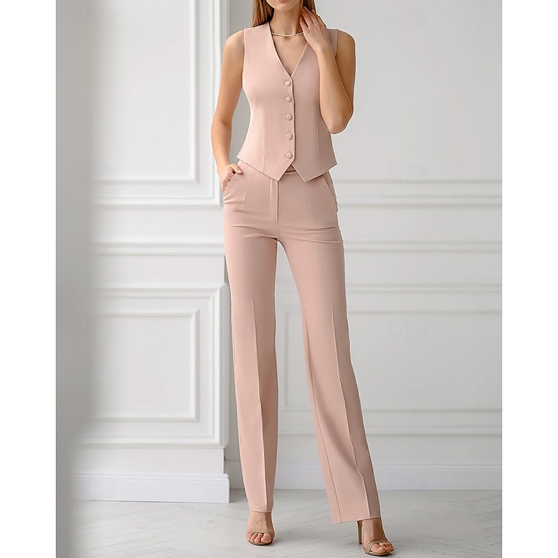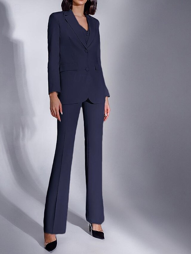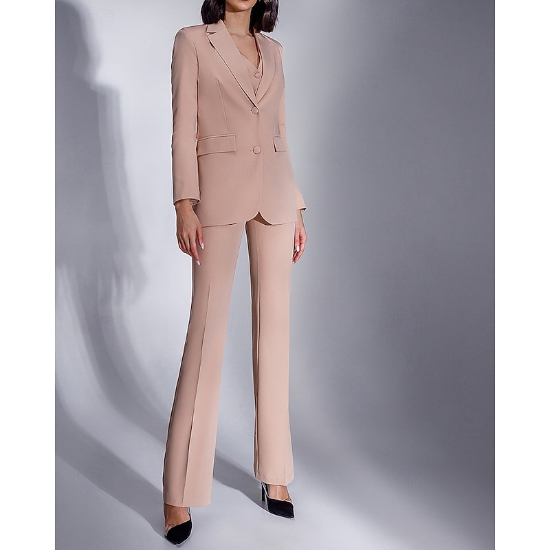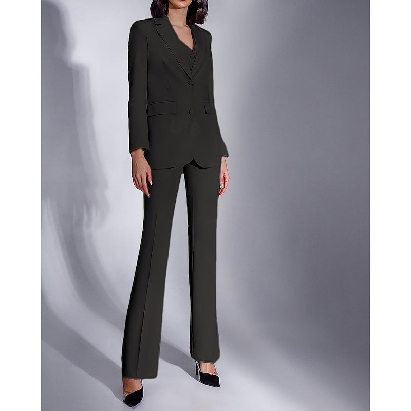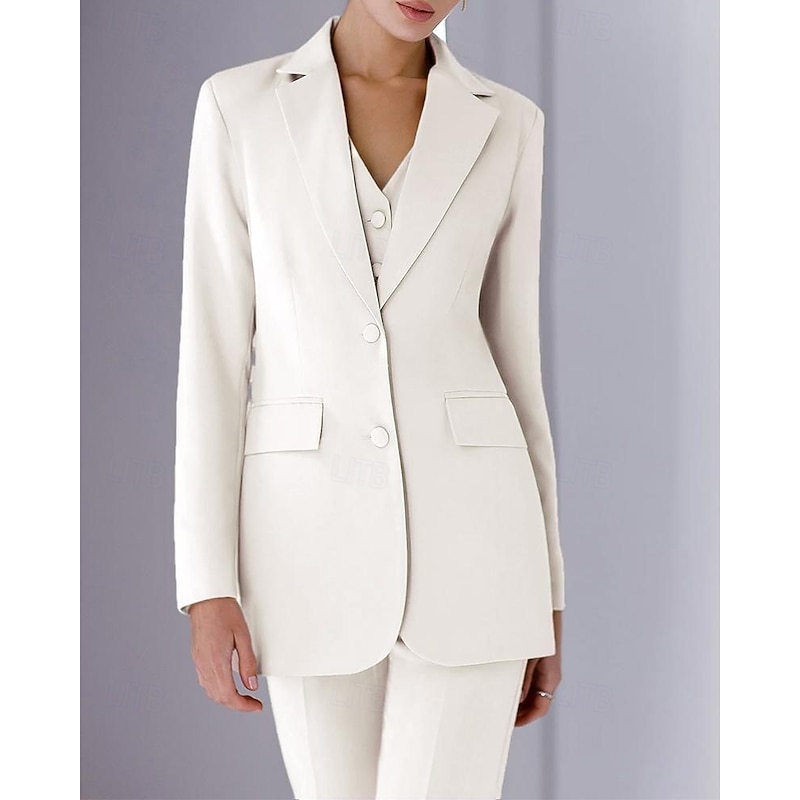 HOT ! Women's 3 Pieces Suits Formal Wedding Guest Stretch Crepe Elegant Minimalist Long Sleeve Ankle Length Notched Lapels Single Breasted