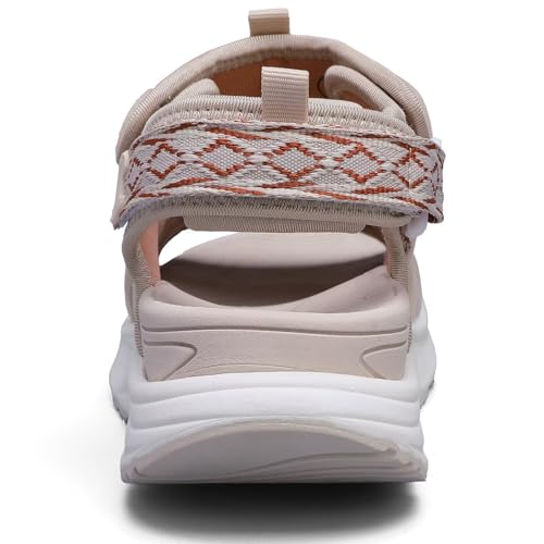 WateLves Womens Orthopedic Walking Sandals Summer Casual Outdoor Hiking Water Platform Sandals with Adjustable Strap Comfortable Plantar Fasciitis Arch Support (Beige brown-9) 7