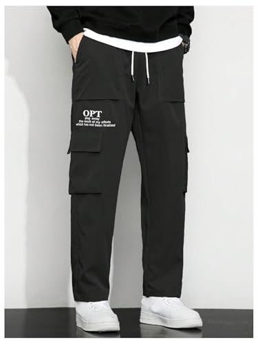 More information about OYOANGLE Men's Letter Print Cargo Pants Drawstring Waist Flap Pocket Trousers Streetwear