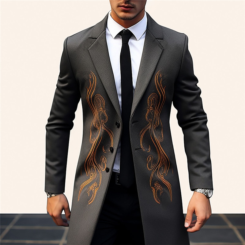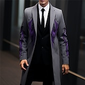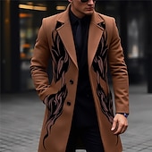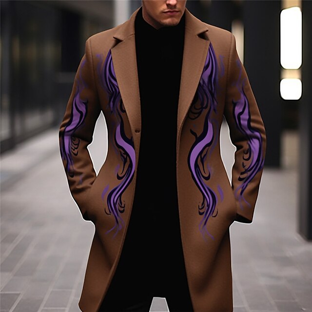 More information about Men's Symbol Winter Coat Overcoat Coat Warm Comfortable Breathable Vintage Business Work Wear to work Going out Pocket Print Fall & Winter Turndown Long Sleeve Black Yellow Purple