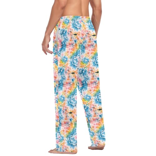 Rainbow Tie Dye Pattern Men Cotton Flannel Pajama Pants Mens Lounge Sleep PJ Bottoms S 1