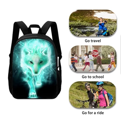 Amzbeauty Teal Wolf Printing Backpack for Students Boys Fashion School Bag One_Size 6