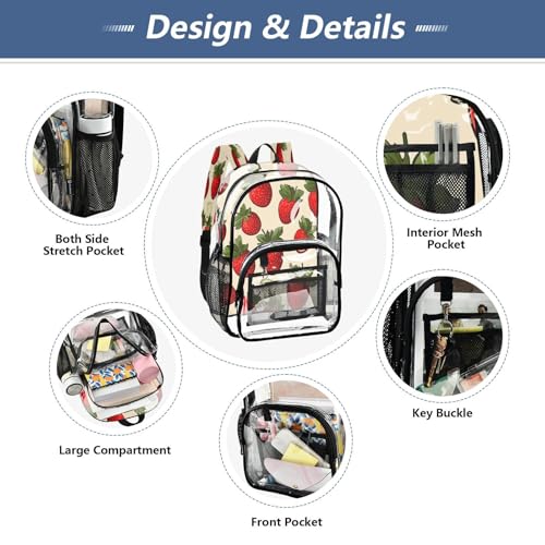 Strawberry Pattern Clear Backpack - Stadium Approved Large 15.7-inch Waterproof Transparent Bag for Sports, Concerts, Work, Travel#364 7