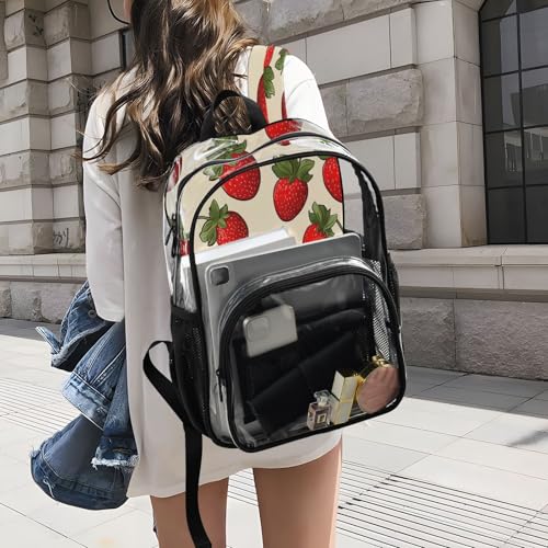 Strawberry Pattern Clear Backpack - Stadium Approved Large 15.7-inch Waterproof Transparent Bag for Sports, Concerts, Work, Travel#364 4