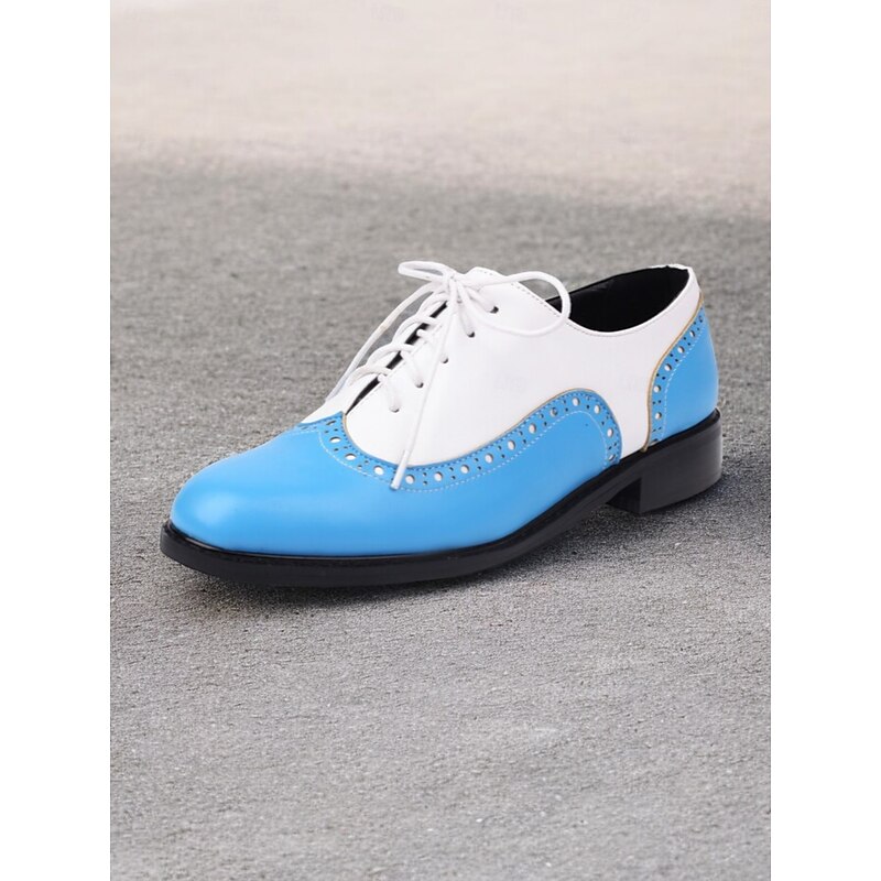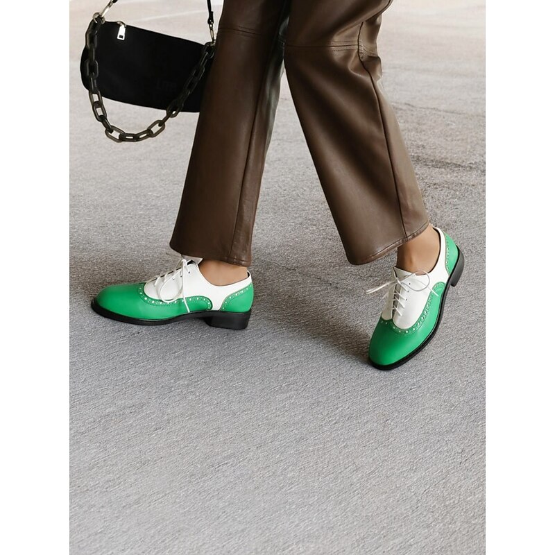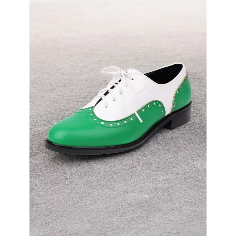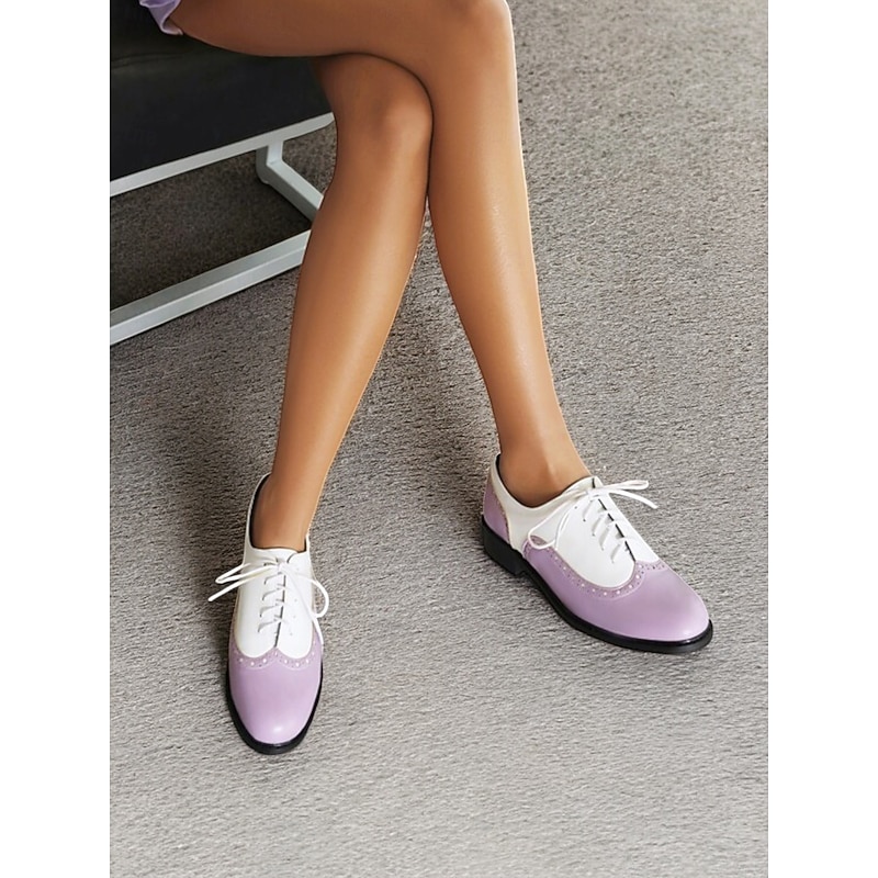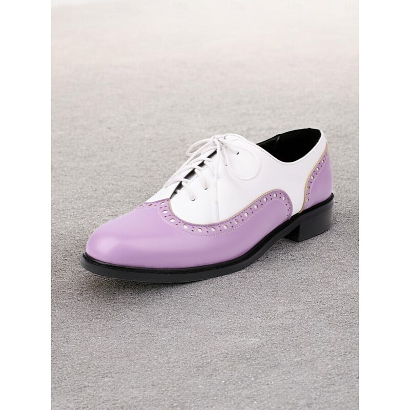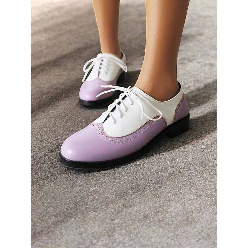 Highlights [Fabric] : Crafted from premium PU for the upper and lined with synthetic leather, these oxford shoes offer durability and a polished appearance, perfect for year-round wear in spring, summer, fall, and winter. [Style] : These classic brogue oxford shoes feature a sophisticated two-tone design in sleek black and crisp white, combining elegance with versatility. The chunky heel ensures all-day comfort and support. [Design Highlights] : The brogue detailing with decorative perforations along the seams adds an elegant touch to these timeless oxfords. The round toe design and color block pattern enhance their classic appeal, while the lace-up closure guarantees a secure fit. [Occasions] : Ideal for both daily and work settings, these shoes effortlessly transition from formal events to smart-casual gatherings. Their versatile style makes them suitable for a variety of occasions, adding a refined finish to any outfit. [Size Notice] : Available in a range of sizes from US5.5/EU35/UK3.5 to US10.5/EU42/UK8.5, these shoes are designed to accommodate standard sizing. It is recommended to select your usual size for the perfect fit.