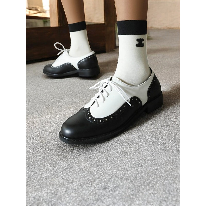 HOT ! Women's Black and White Oxford Shoes with Brogue Detailing – Classic Two-Tone Formal Footwear