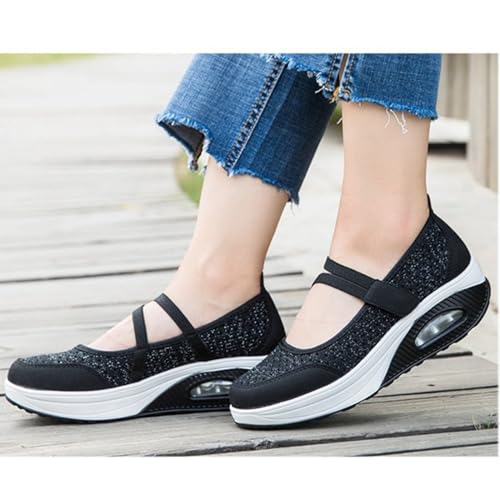 Women'S Mesh Hook and Loop Wedge Heel Platform Yaoyao Shoes Adjustable Lightweight Breathable Orthopedic Air Cushion Wedge Sneakers for Diabetes Arthritis Non Slip Nurse Shoes
