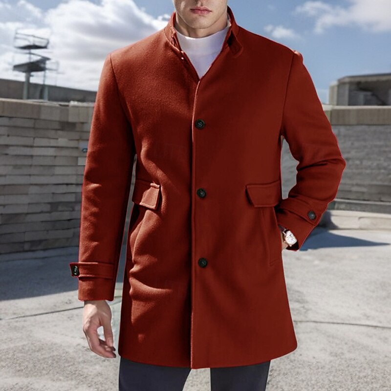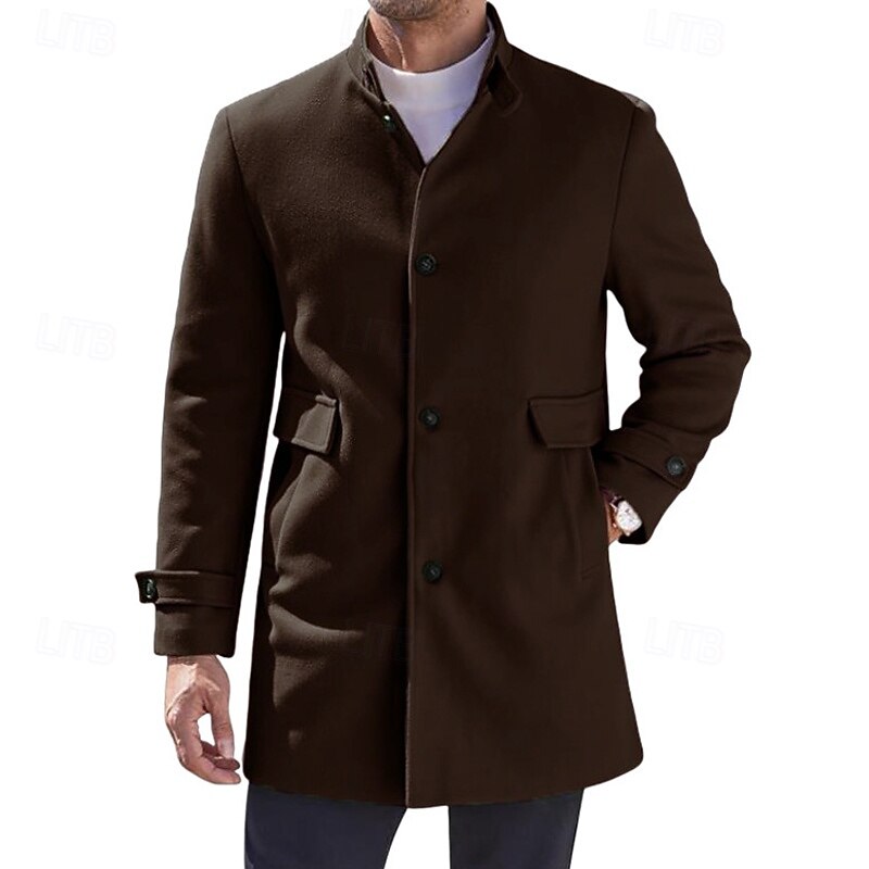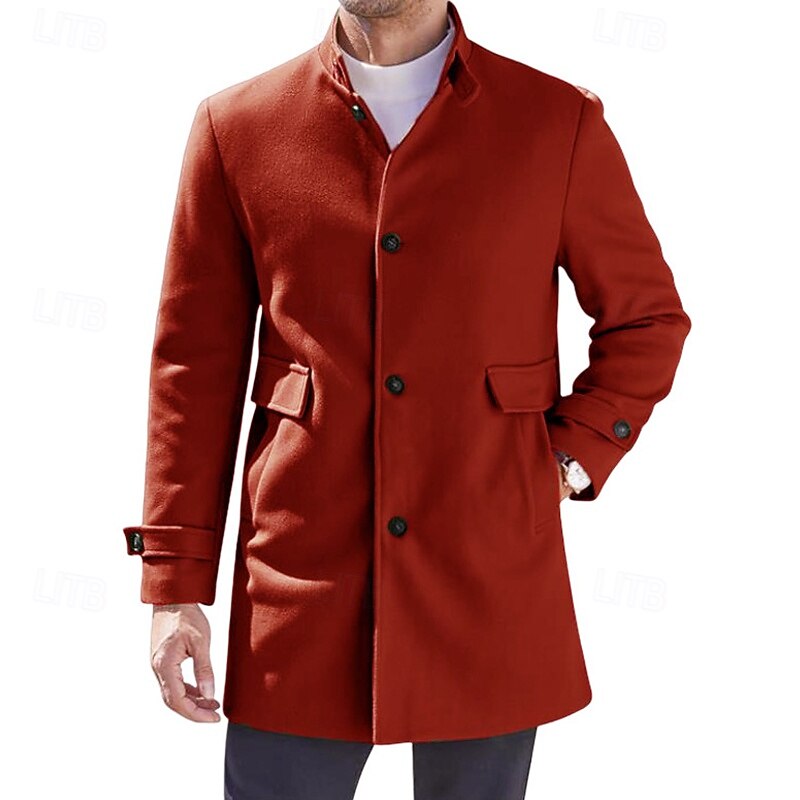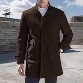 More information about Men's Peacoat Trench Coat Vacation Daily Fall Winter Polyester Thermal Warm Windproof Outerwear Clothing Apparel Fashion Classic Plain Pocket Lapel Single Breasted