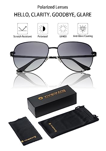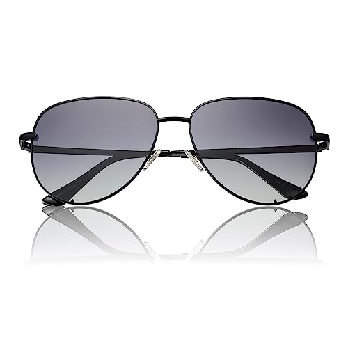 • Black aviator sunglasses for women: This black womens sunglasses are meticulously designed with attention to detail, ensuring that you stand out from the crowd with an exclusive accessory that combines style, durability, and exceptional quality.The soft silicon nose pads offer a secure and comfortable fit, preventing discomfort and slippage, so you can wear these sunglasses for extended periods without any irritation.
