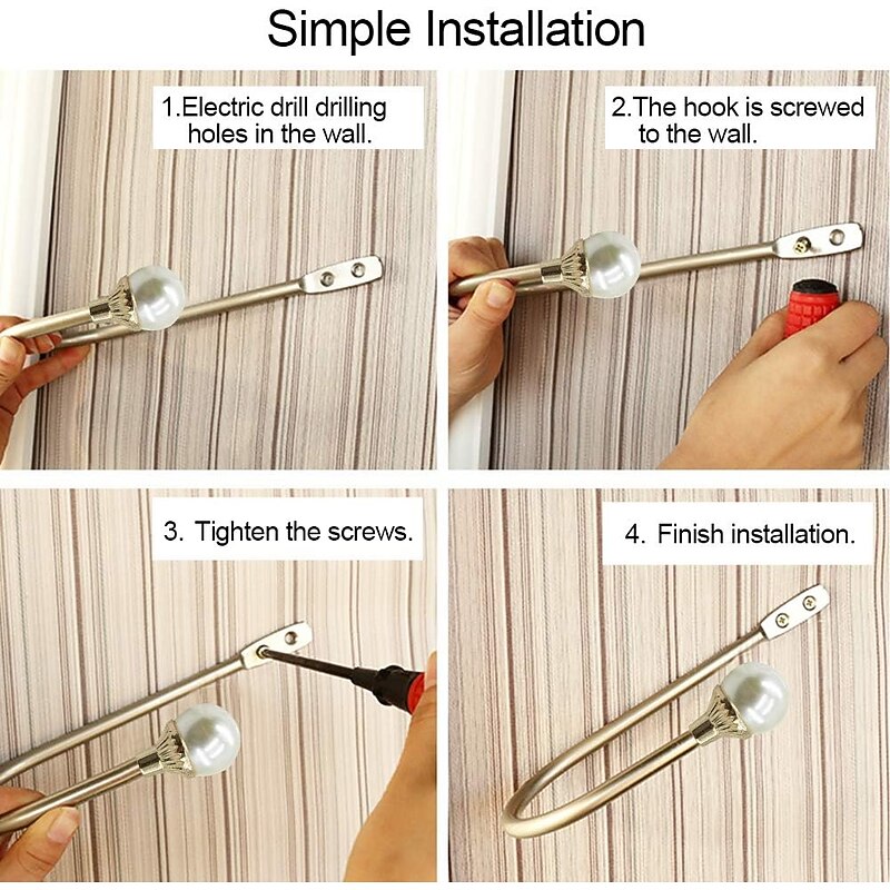 Curtain holders for wall,easy to install: First use an electric drill to drill holes in the wall, fix the curtain hooks on the wall, put the screws, and then tighten the screws with a screwdriver to complete the installation.There are three angles to install the curtain holdback hooks:horizontal, vertical, or inclined angle.