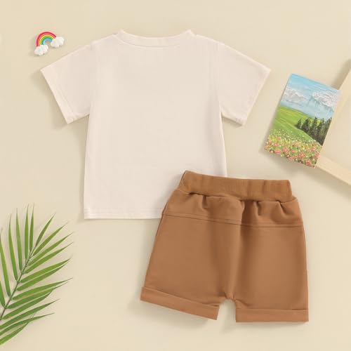 Toddler Baby Boy Clothes Summer Funny Letter Print Shirts Top Solid Pocket Shorts 2PC Sets Kids Casual Outfits 5