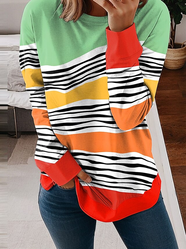 This Women's Sweatshirts Graphic Geometric Striped Casual Long Sleeve Crew Neck Regular Tops Street Casual Holiday Print Light Green Blue Purple Green Spring Fall Winter combines elegant design with practical functionality. Every detail has been carefully considered to ensure you get the finest possible experience. The first-class construction means this product will serve you well for years to come.