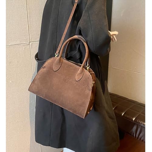 Brown Suede Tote Bag For Women,Brown Suede Handbag,Suede Satchel Bags For Women,Fashion Retro Shoulder Satchel Bag 1