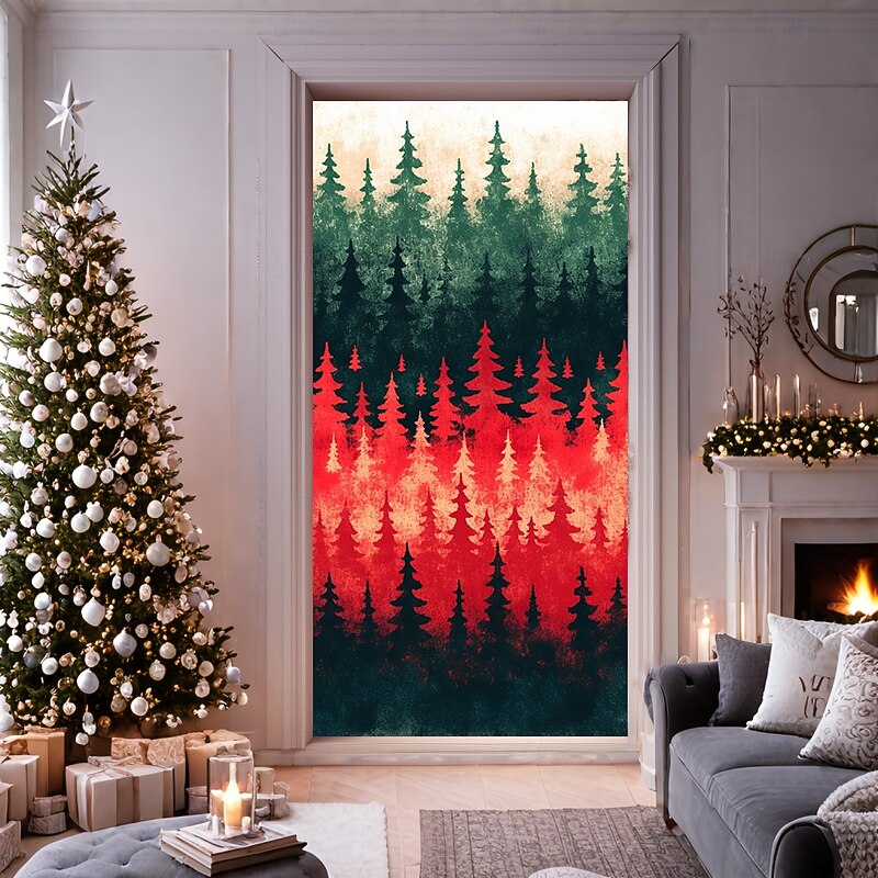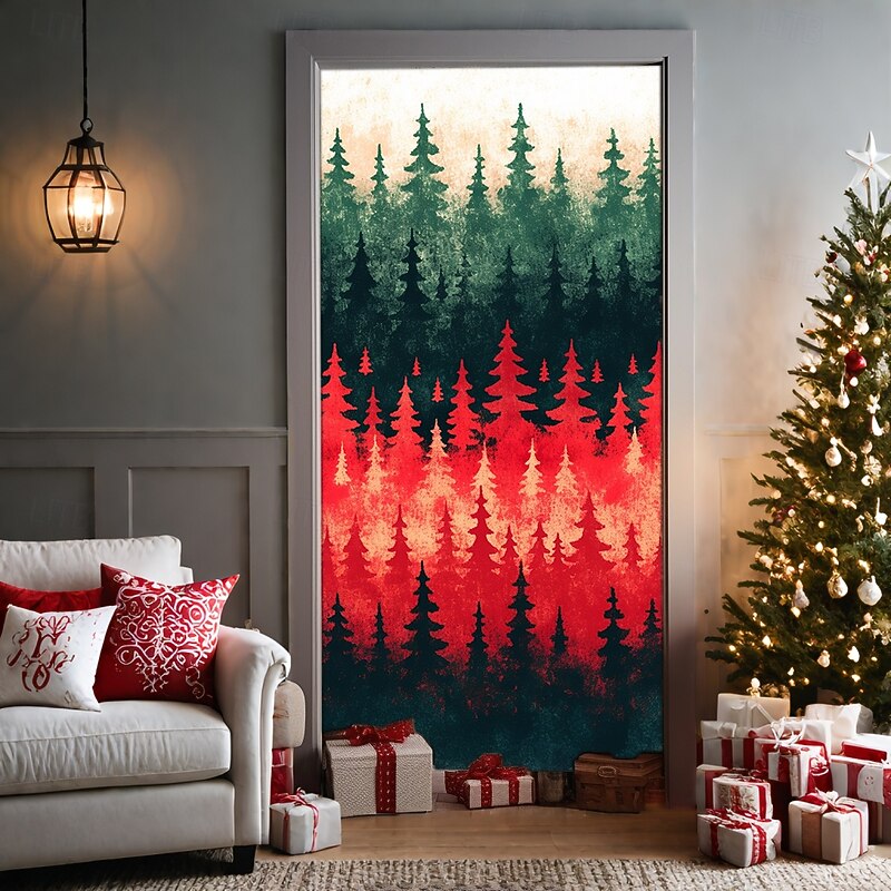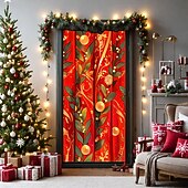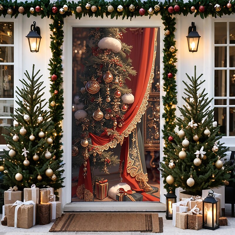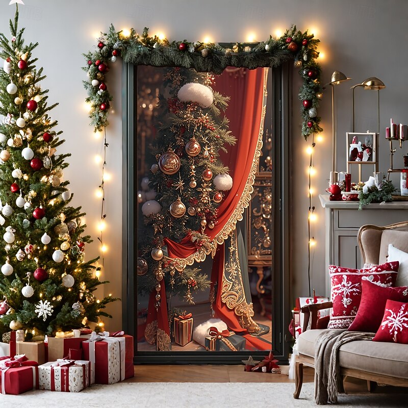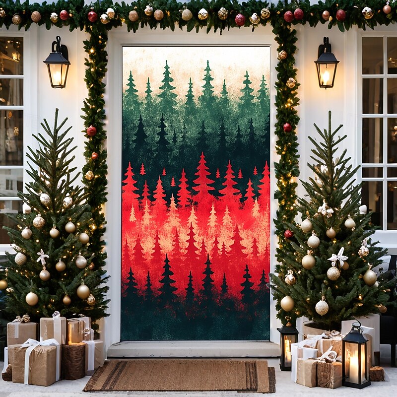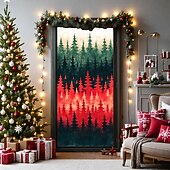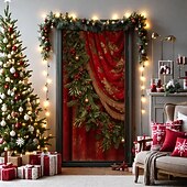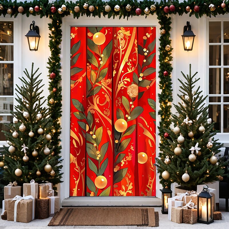 HOT ! Christmas Door Decorations Door Covers Evergreen Holly Door Tapestry Door Curtain Decoration Backdrop Door Banner for Front Door Farmhouse Christmas Holiday Party Decor Supplies Gift Indoor/Outdoor