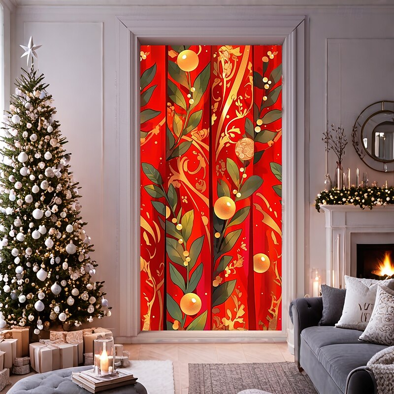 Christmas Door Decorations Door Covers Evergreen Holly Door Tapestry Door Curtain Decoration Backdrop Door Banner for Front Door Farmhouse Christmas Holiday Party Decor Supplies Gift Indoor/Outdoor 7