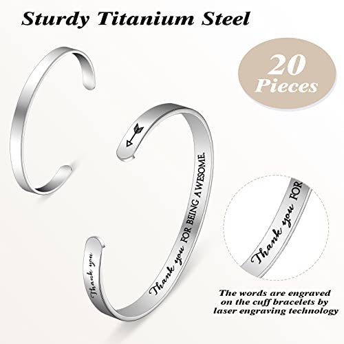 Fumete 20 Pcs Inspirational Cuff Bracelets Bulk Gifts for Women Thank You Bracelets Motivational Engraved Jewelry for Coworker 3