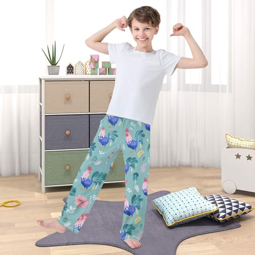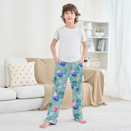 Cock Floral Boys Long Pants Soft Trousers Elastic Waist Kids Lounge Bottoms with Pockets S-XL 4