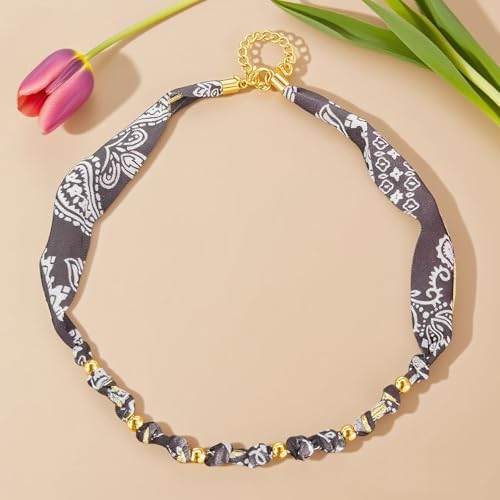 Dcfywl731 Scarf Necklace with Charm Bandana Choker Necklaces for Women Silk Tie Necklaces Woman Jewelry Colorful Scarfs for Women 1