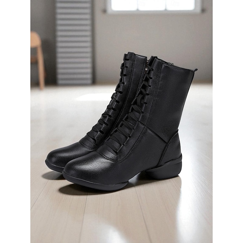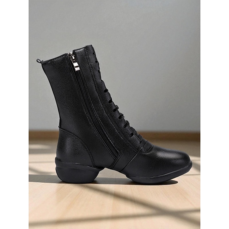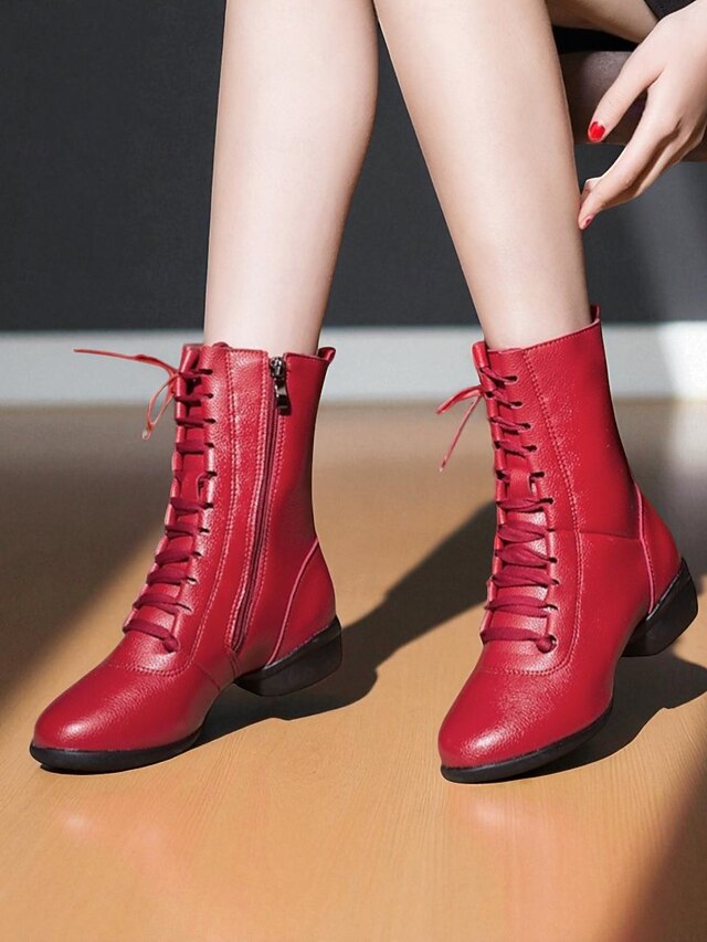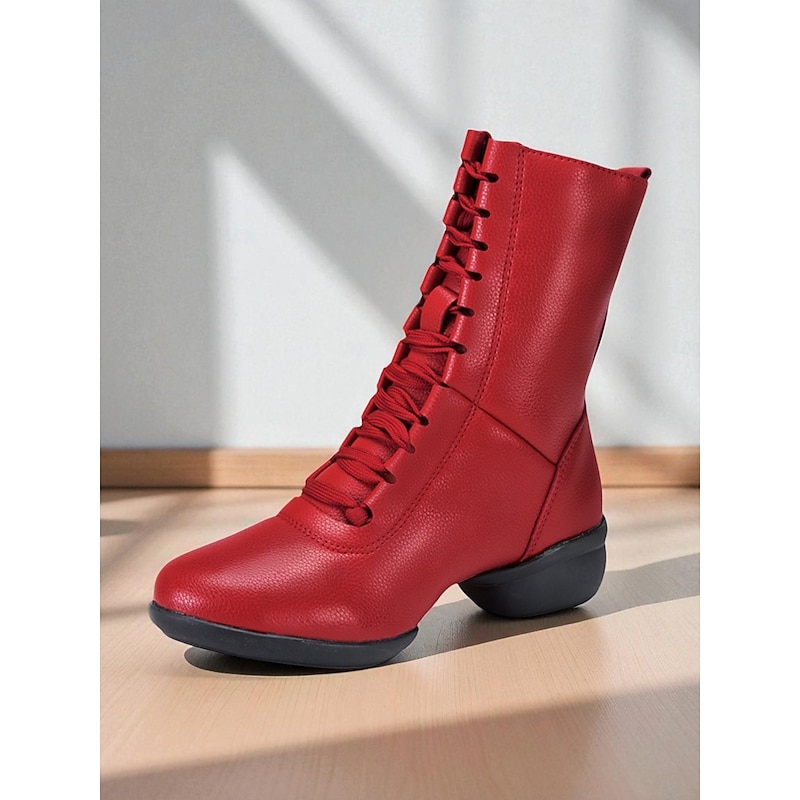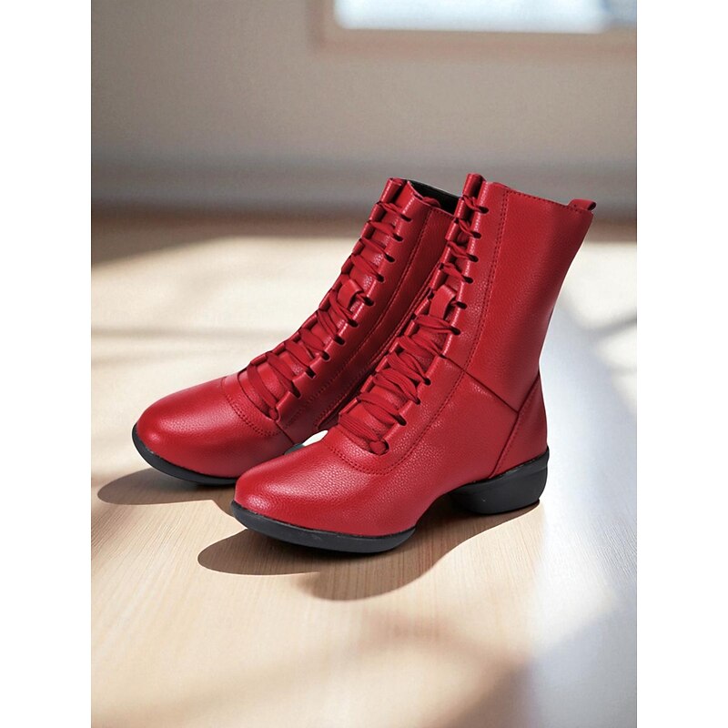 Women's Red Lace-Up Dance Boots - Soft Sole Ankle Boots with Side Zipper for Jazz, Practice and Performance 1