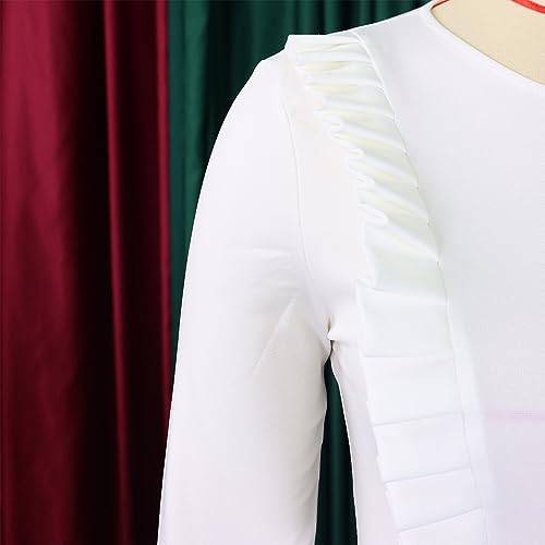 More information about Women's Business Casual Midi Pencil Dress Elegant Round Neck Long Sleeves Ruffle Trim High Waist Bodycon Work Dress (Color : White, Size : 3X-Large)