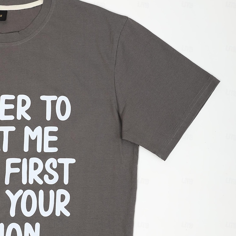 Highlights [Fabric] : Crafted from 100% breathable cotton, this men's T-shirt offers a soft and comfortable fit, perfect for summer. The micro-elastic material ensures ease of movement and all-day comfort. [Fit] : Featuring a regular fit design, this tee provides a relaxed but modern silhouette that complements various body types. [Design Highlights] : The T-shirt boasts a bold letter graphic on the front, showcasing a humorous quote in striking white lettering that adds a touch of personality. Its classic crew neck design enhances the casual yet stylish vibe, available in versatile colors like Blue, Gray, and Army Green. [Occasions] : Ideal for sports, outdoor activities, holidays, or casual outings, this T-shirt effortlessly combines fashion with function, making it a go-to choice for a variety of occasions. [Size Range] : Available in a wide range of sizes from S to XXL, ensuring a suitable fit for different body shapes.