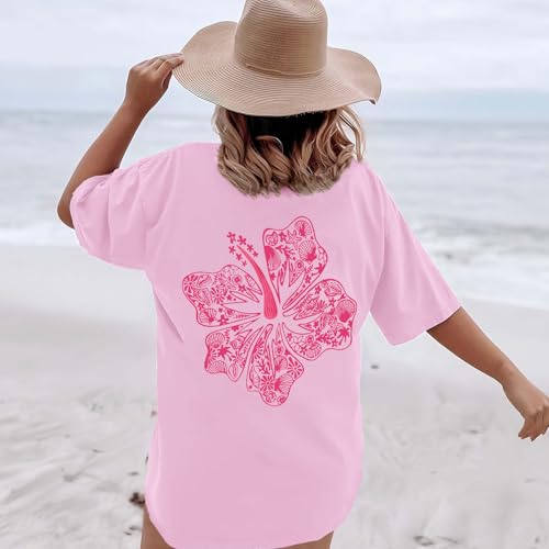 • Features: The Back of this Oversized Hawaiian Beachy T Shirts Are Printed with Various Ocean Elements to form a Cute Aesthetic Hibiscus Flower. Short Sleeve, Crewneck, Floral Print, Trendy Tees for Women, Baggy Casual Hawaii Vacation T-Shirt for Teen Girls, Making You Look Attractive in the Crowd