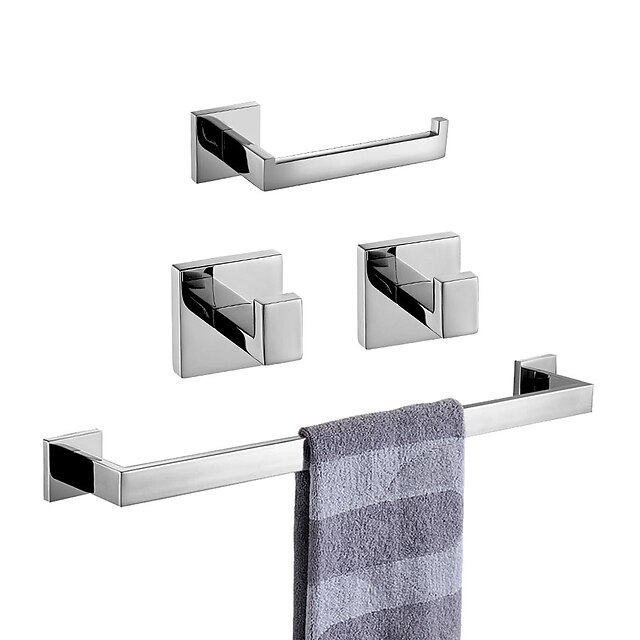 Bathroom Hardware Set 4 Pieces, SUS304 Stainless Steel Remodeled Wall Mounted Bathroom Accessories, Include 2 Robe Hook,1 Towel Bar,1 Toilet Paper Holder 17
