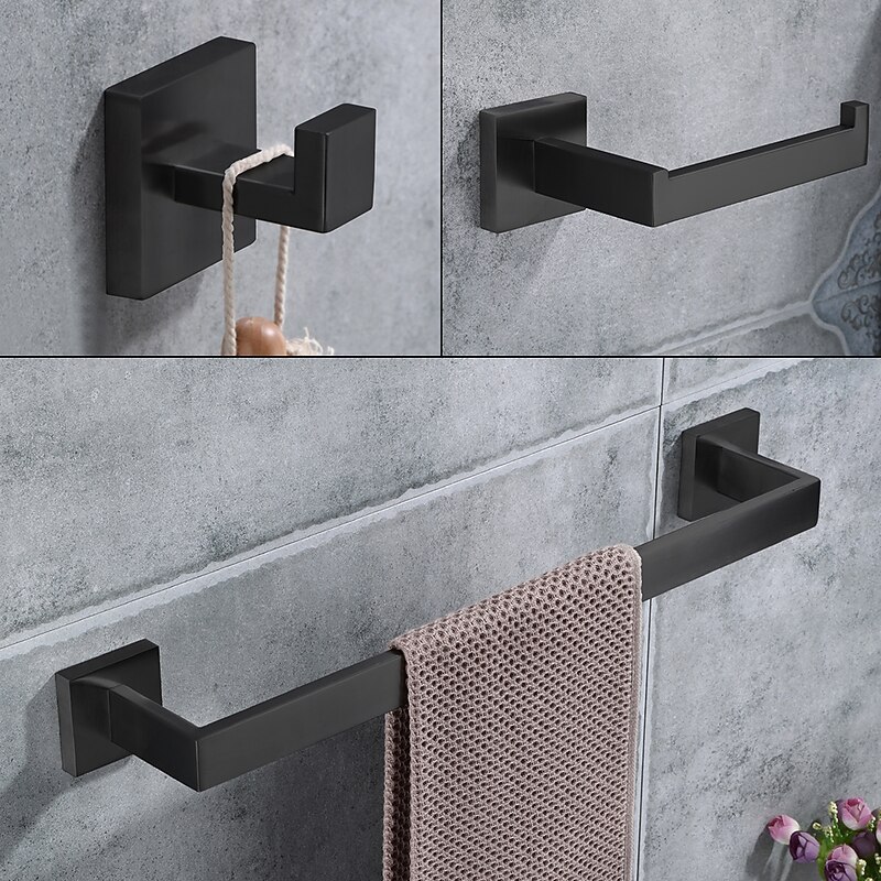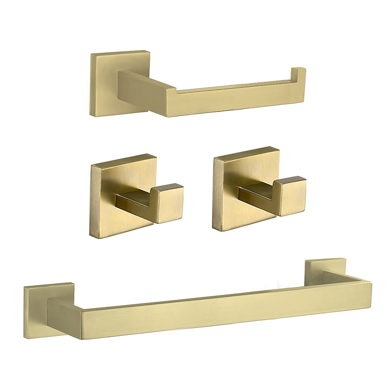 Bathroom Hardware Set 4 Pieces, SUS304 Stainless Steel Remodeled Wall Mounted Bathroom Accessories, Include 2 Robe Hook,1 Towel Bar,1 Toilet Paper Holder 11