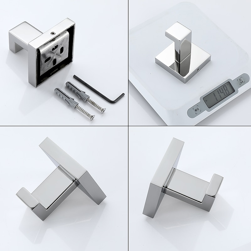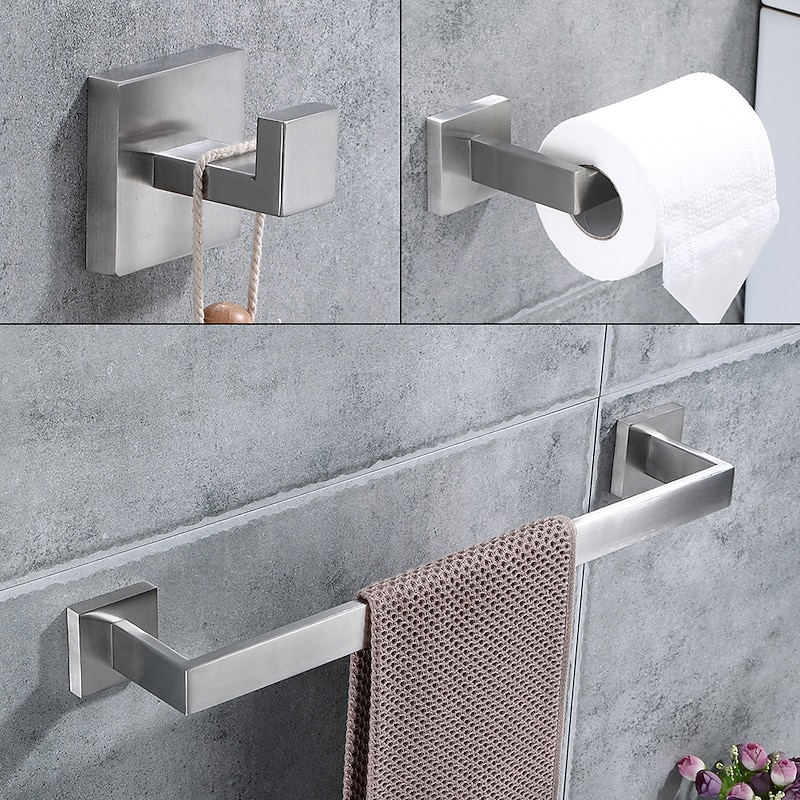 Bathroom Hardware Set 4 Pieces, SUS304 Stainless Steel Remodeled Wall Mounted Bathroom Accessories, Include 2 Robe Hook,1 Towel Bar,1 Toilet Paper Holder 7